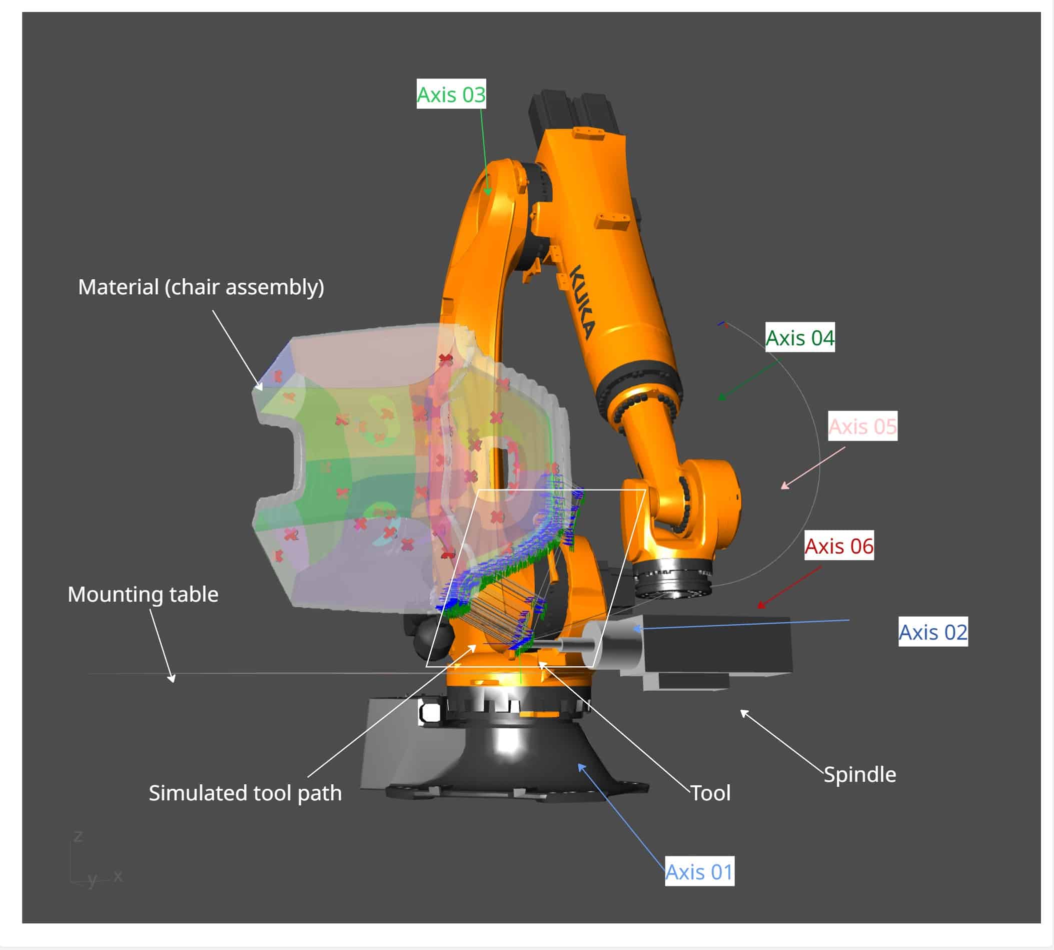 Before actually cutting the pieces of board that will make up our chair, we ran a quick draft angle analysis (see Phase 3) to check for manufacturability using the 6-axis robot. This step allowed us to make last changes in our geometry before actually cutting the pieces. Otherwise, we will be wasting time and resources for a geometry that cannot even be manufactured by our 6-axis robot. We later on learned that this draft analysis check was not enough. We should have run a full simulation of how the robot will go through each section of our chair. Since we were still learning the workflow and had to manage our time with all the other groups using the tools, we neither had the time nor the skillset to do those simulations at the time.